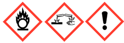 Перекись водорода не горит, однако представляет опасность возникновения пожаров или взрывов. При разложении выделяется горючий кислород. Не допускается контакт с железом, серебром, хромом, медью, латунью, марганцем и т.д., так как вещество стимулирует их разложение. Относится ко второму классу опасности для человека.